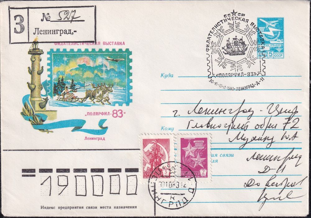 ХМК со спецгашением - Полярфил-83, 30.10-10.11.1983 год, Ленинград, прошел почту