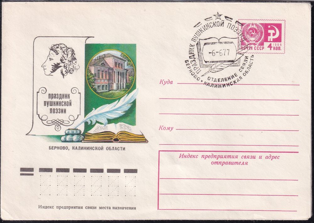 ХМК со спецгашением - Праздник Пушкинской поэзии, 6.06.1977 год, Берново, Калининская обл.