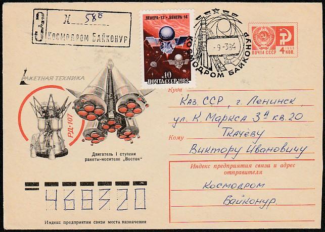 ХМК со спецгашением. Ракетная техника, 09.03.1984 год, космодром Байконур , прошёл почту (Ю)