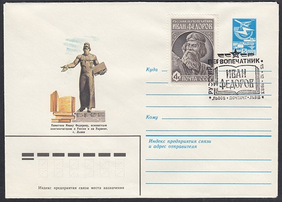 ХМК со спецгашением - Русский первопечатник Иван Федоров, Львов 15.12.1983 год