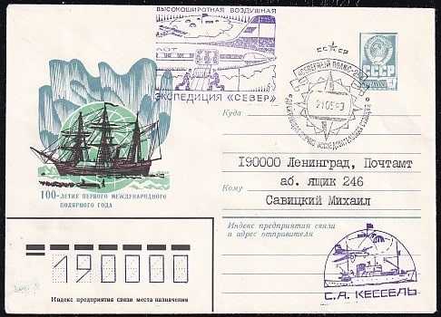 ХМК со спецгашением "Северный полюс-25" (адресат заполнен, разные даты на гашении), 21.05.1983 год