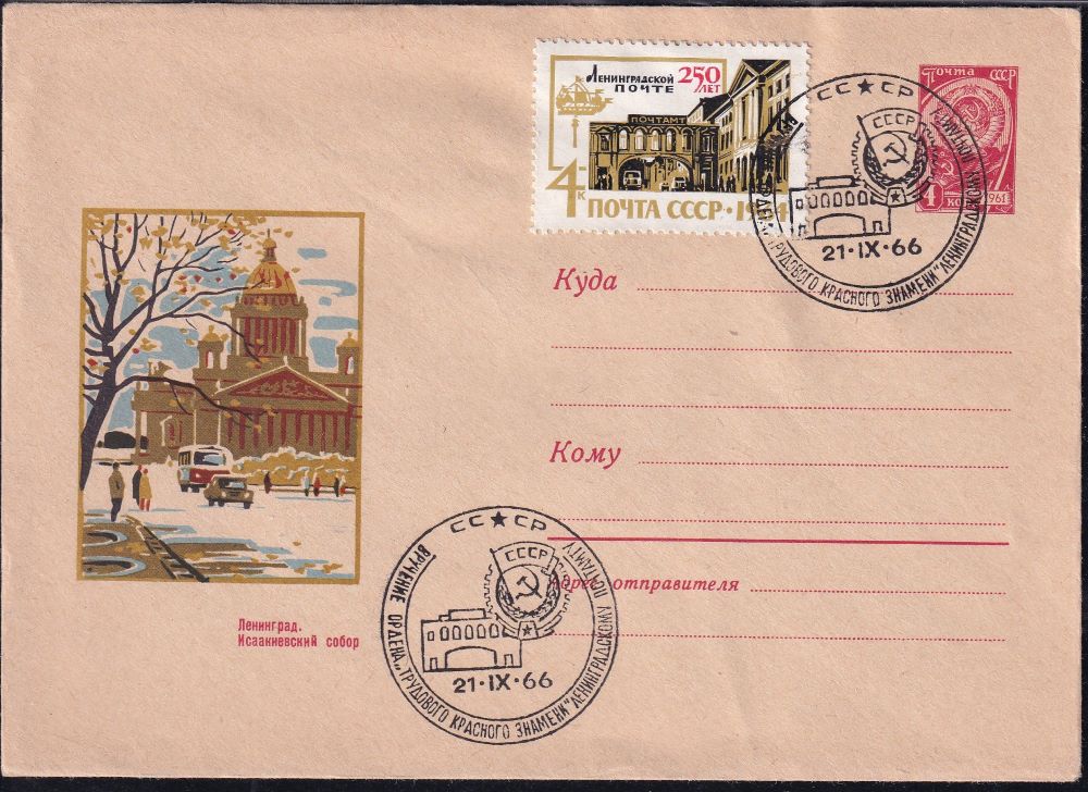 ХМК со спецгашением - Вручение ордена "Трудового Красного знамени" Ленинградскому почтамту, 21.09.1966 год, Ленинград
