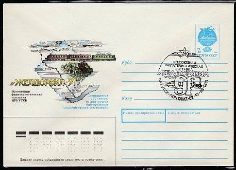 ХМК со спецгашением. Всесоюзная филвыставка "Желдорфил-91", 02-12.08.1991 год, Иркутск, почтамт