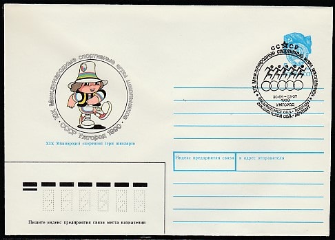 ХМК со спецгашением. XIX Международные игры школьников, 30.06-03.07.1990 год, Ужгород, почтамт (Ю)