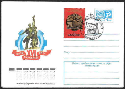 ХМК со спецгашением - XVI съезд профсоюзов СССР, 1977 г.