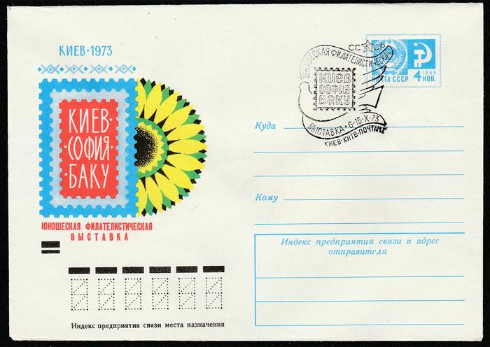 ХМК со спецгашением. Юношеская филвыставка Киев-София-Баку. 06-15.10.1973 год.