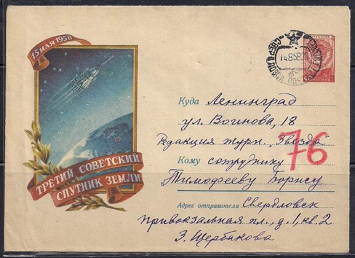 ХМК. Третий советский спутник Земли. 1958 год, № 58-264, прошёл почту