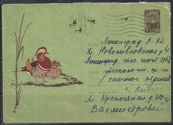 ХМК. Утка-мандаринка. № 64-214, 23.04.1964 год, прошёл почту