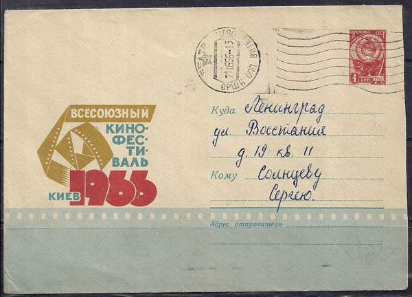 ХМК. Всесоюзный кинофестиваль в Киеве. № 66-153, 28.04.1966 год, прошёл почту
