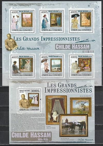 Импрессионисты, Чайльд Хассам, Коморы 2009 г, малый лист + блок