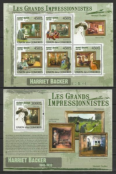 Импрессионисты, Гарриет Баккер, Коморы 2009 г, мал. лист + блок