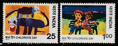 Индия 1977 год. Детские рисунки, 2 марки