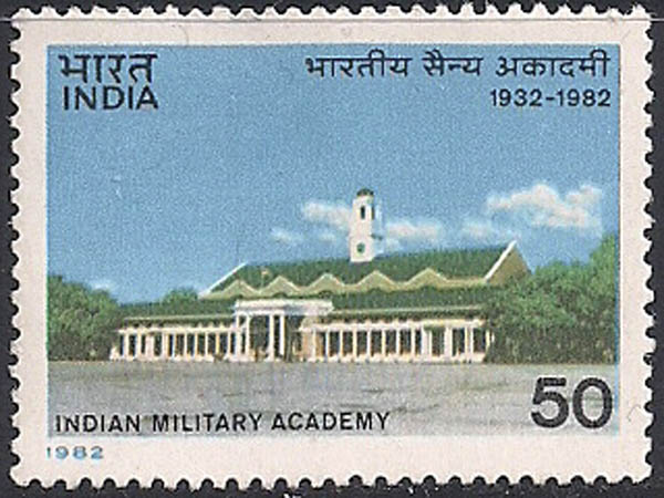 Индия 1982 год. 50 лет Военной Академии Индии. 1 марка с наклейкой