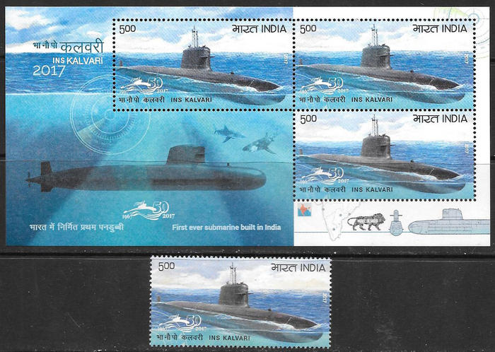 Индия 2017 год. Подводная лодка, блок и марка