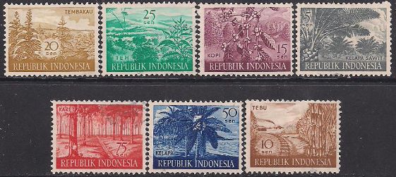 Индонезия 1960 год. Полезные растения. 7 марок с наклейкой
