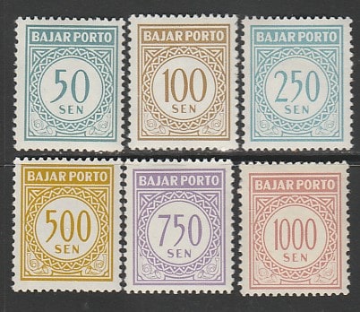 Индонезия 1962 / 1963 год. Доплатные марки. Цифровой рисунок, 6 марок. (1,4)