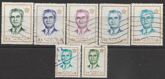 Иран 1972 год. Шах Мохаммед Реза Пехлеви, 7 марок из серии (гашёные) (7 из 12) (16,5/4,2)