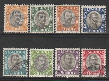 Исландия 1920 год. Король Кристиан X, 8 служебных марок (гашёные)