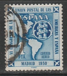 Испания 1951 год. VI Американо - испанский почтовый конгресс в Мадриде, 1 марка (гашёная) (9/3,5)