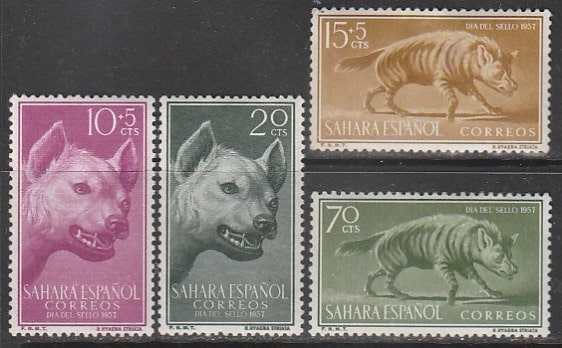 Испанская Сахара 1957 год. Гиены, 4 марки (наклейка)