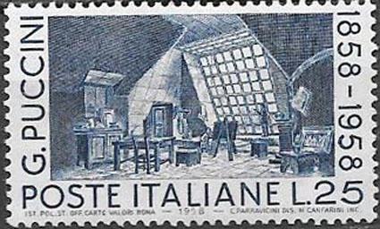 Италия 1958 год. Итальянский композитор Джакомо Пуччини. 1 марка