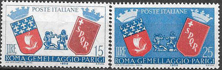 Италия 1959 год. Градостроительное партнерство между Парижем и Римом. 2 марки