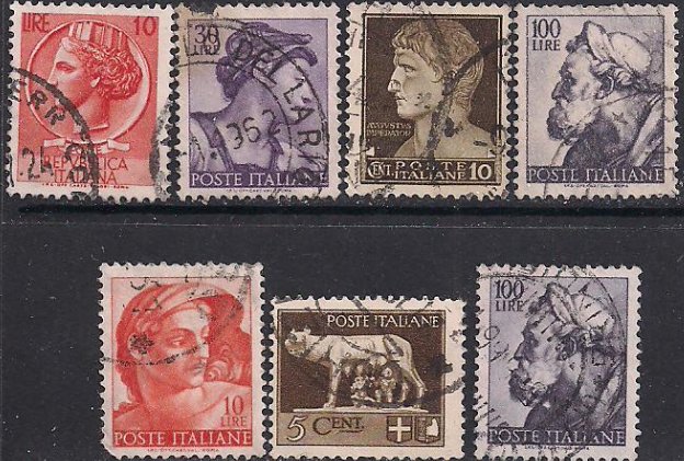 Италия 1961 год. Стандарт. Неполная серия (7 гашеных марок)