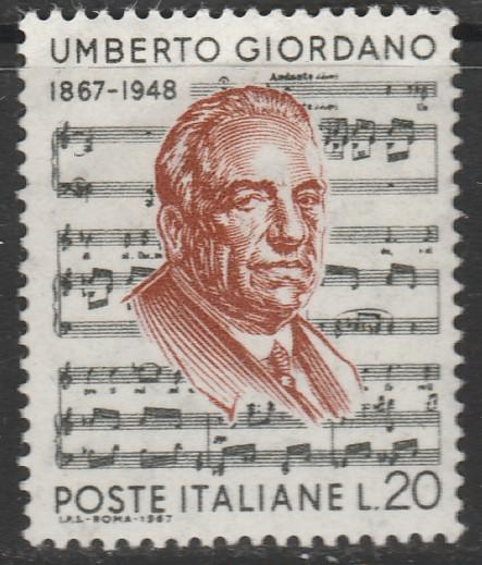 Италия 1967 год. 100 лет со дня рождения оперного композитора Умберто Джордано. 1 марка