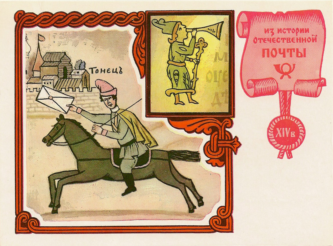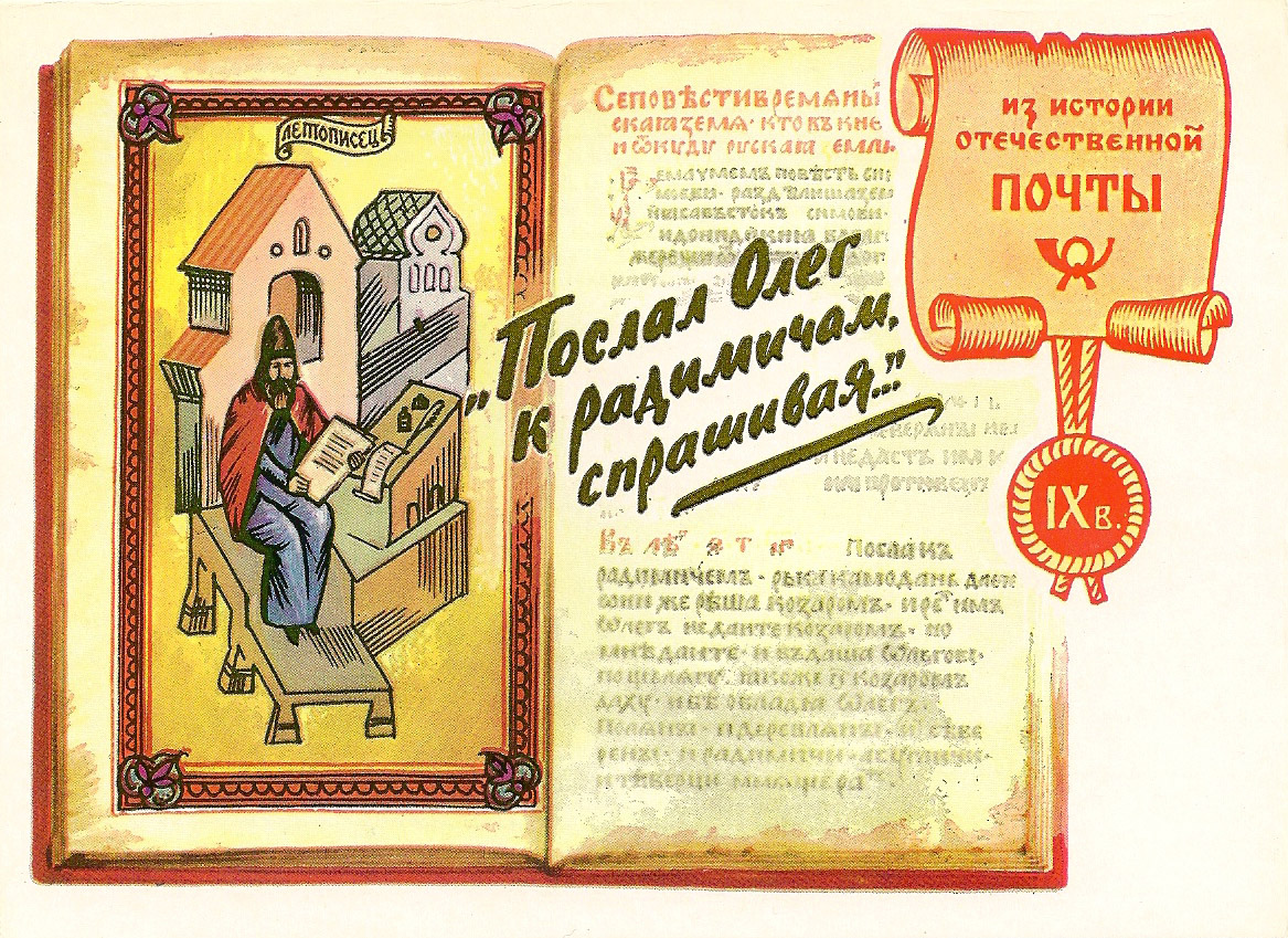 Точно неизвестно, когда родилась почта на территории нашей Родины. Но уже в 885 г. летописец записал в "Повестях временных лет": "Послал Олег к Родимичам, спрашивая..." С этих пор все чаще и чаще на страницах русских хроник появляются сообщения о посылках вестников в разные концы Киевской Руси. В 945 г. киевский князь Игорь заключил договор с Византией, в котором специально оговаривался обмен гонцами между двумя государствами.
