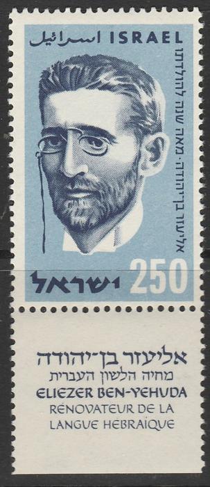 Израиль 1959 год. Элиэзер Бен-Йехуда - "отец современного иврита". 1 марка с купоном