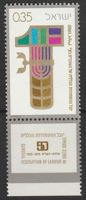 Израиль 1970 год. Эмблема. 50 лет трудовой федерации Израиля. 1 марка с купоном