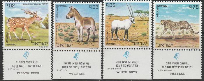 Израиль 1971 год. Охрана природы. Дикие животные из библейских времён. 4 марки с купонами