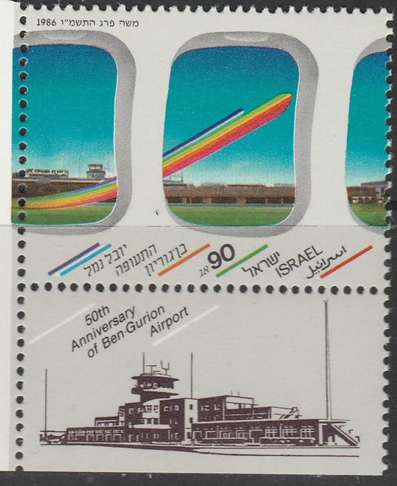 Израиль 1986 год. 50 лет аэропорту Бен-Гурион. 1 марка с купоном