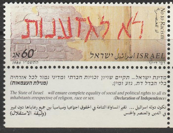 Израиль 1986 год. Борьба против расизма. 1 марка с купоном