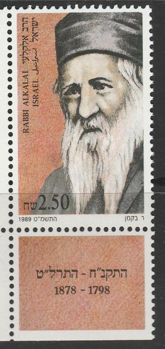 Израиль 1989 год. Алкалай Иехуда - раввин, каббалист. 1 марка с купоном