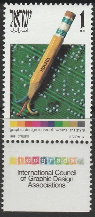 Израиль 1989 год. Графический дизайн в Израиле. Карандаш на плате. 1 марка с купоном