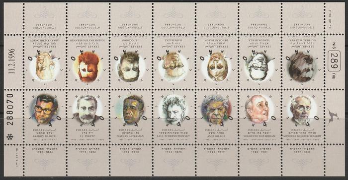Израиль 1996 год. Современные иудейские писатели. (м.л.) 14 марок с купонами