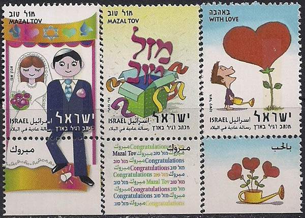 Израиль 2003 год. Марки мелкого достоинства. Детские картинки. 3 марки с купоном