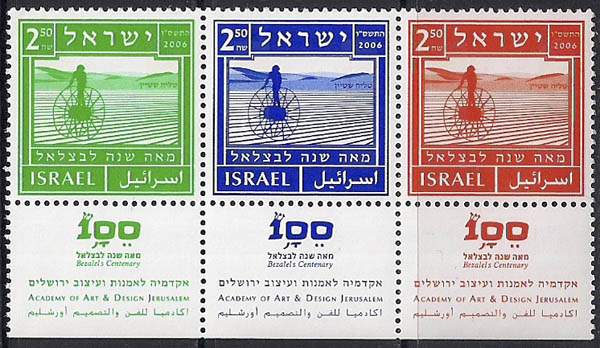 Израиль 2006 год. 100 лет Академии Искусств в Бецалеле (Иерусалим). 3 марки с купонами