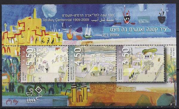 Израиль 2008 год. 100 лет Тель-Авиву. История города в иллюстрациях. 1 блок