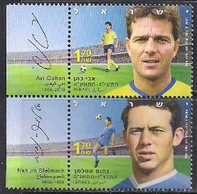 Израиль 2011 год. Знаменитые футболисты. 2 марки с купонами из серии 1.6м