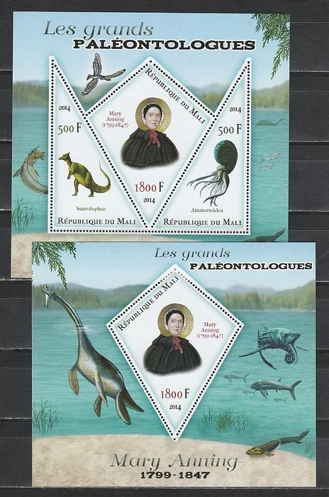 Известные Палеонтологи, М.Аннинг, Мали 2014, малый лист + блок
