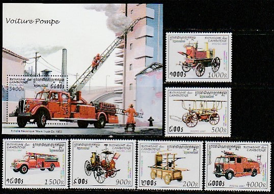 Камбоджа 1997 год. Пожарные машины, 6 марок + блок (157.1690)