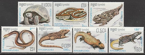 Кампучия (Камбоджа) 1987 год. Рептилии, 7 марок