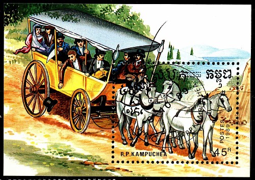Кампучия (Камбоджа) 1989 год. Лошади. Гашеный блок