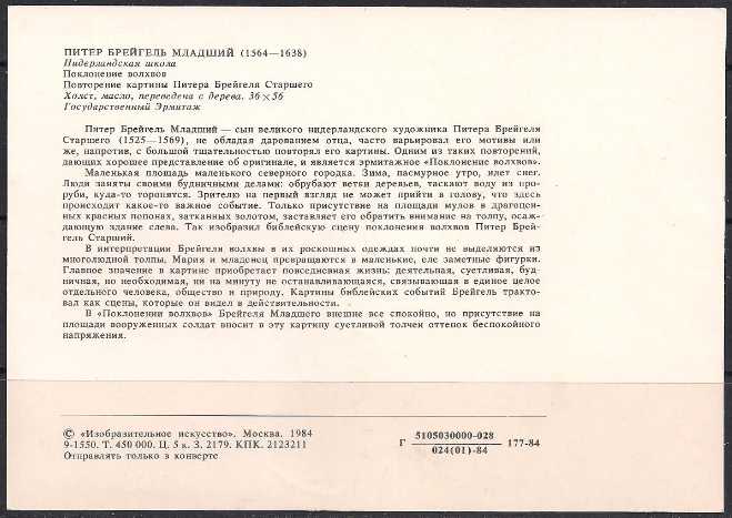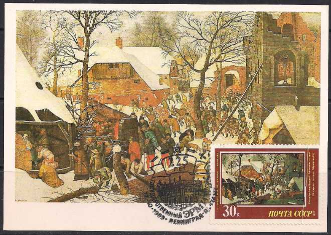 Картмаксимум. 225 лет Государственному Эрмитажу. Картина Брейгеля младшего "Поклонение волхвов", 17.10.1989 год, Ленинград почтамт