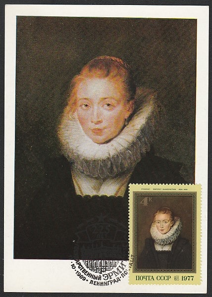 Картмаксимум. 225 лет Государственному Эрмитажу. Картина Рубенса "Портрет камеристки", 17.10.1989 год, Ленинград, почтамт