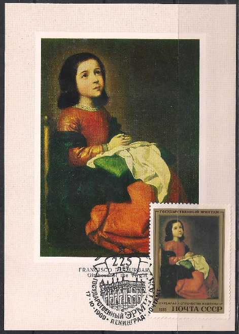 Картмаксимум. 225 лет Государственному Эрмитажу. Картина Сурбарана "Отрочество мадонны", 17.10.1989 год, Ленинград почтамт