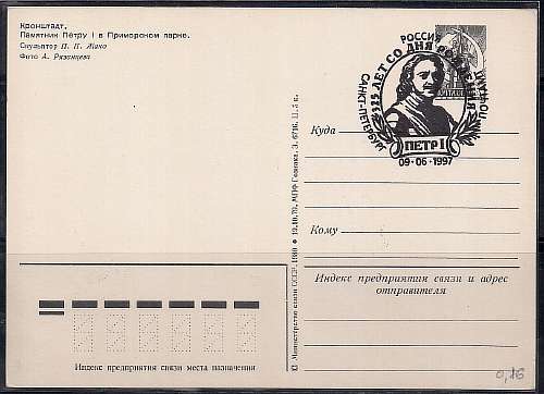 Картмаксимум. 325 лет со дня рождения Петра Первого, 09.06.1997 год, СПб почтамт