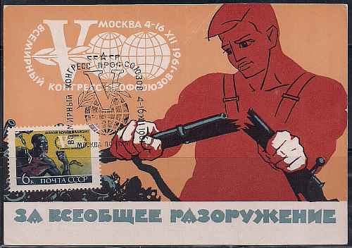 Картмаксимум. 5-й Всемирный конгресс профсоюзов, 04-16.12.1961 год, Москва почтамт